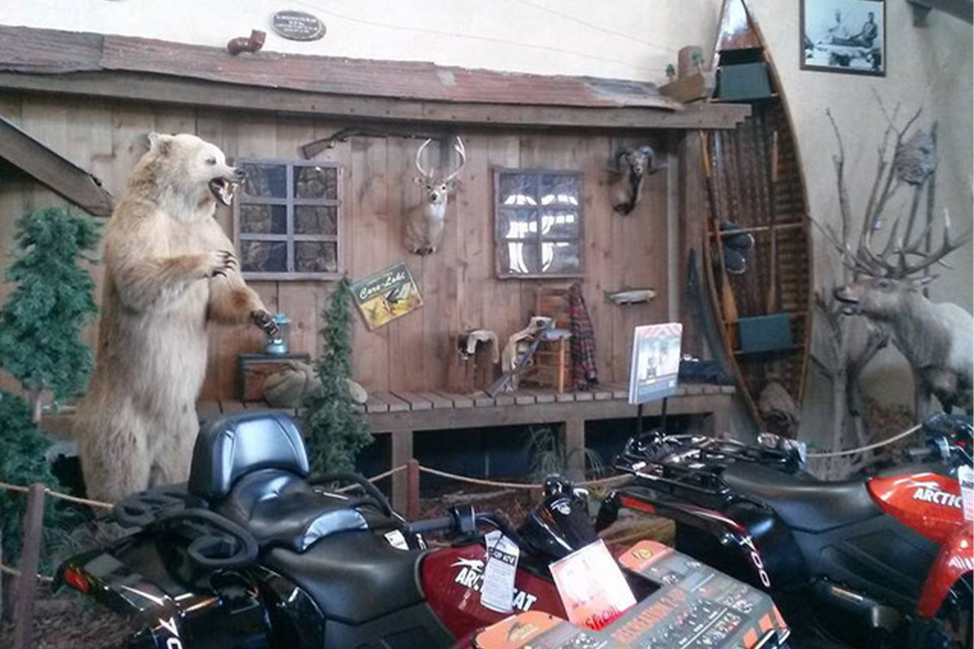 釣りやキャンプ、ハンティング用品に加え、ボートや関連機器まで幅広く揃っており、店内はまるでアウトドアのテーマパークのようです。